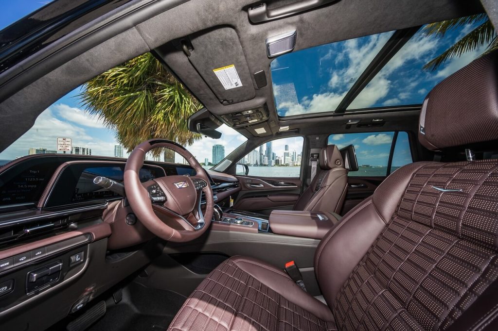 Industry-Leading Technology: The centerpiece of the Escalade’s interior is the massive curved OLED display that houses the infotainment system and the instrument cluster. It offers impressive clarity and functionality, with features like navigation, Apple CarPlay, Android Auto, and more.